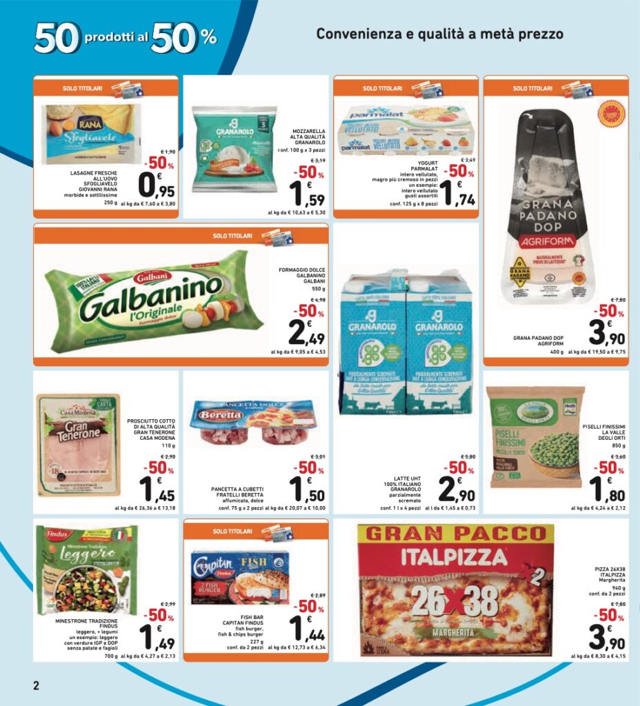 Protagonisti “50 prodotti al 50%“, una formula con cui Conad strizza l’occhio al sottocosto (50 infatti è il massimo di prodotti che si possono coinvolgere in questo genere di promozione) anche se la selezione è tutta dedicata ad alimentari e prodotti per la casa.