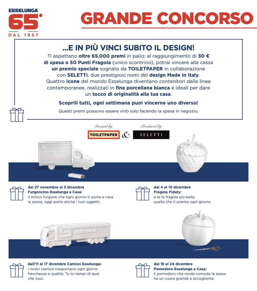 Al raggiungimento di 30 € di spesa con carta Fidaty o 50 Punti Fragola (unico scontrino) possiamo vincere direttamente alla cassa un premio speciale TOILETPAPER in collaborazione con SELETTI, due prestigiosi nomi del design Made in Italy.