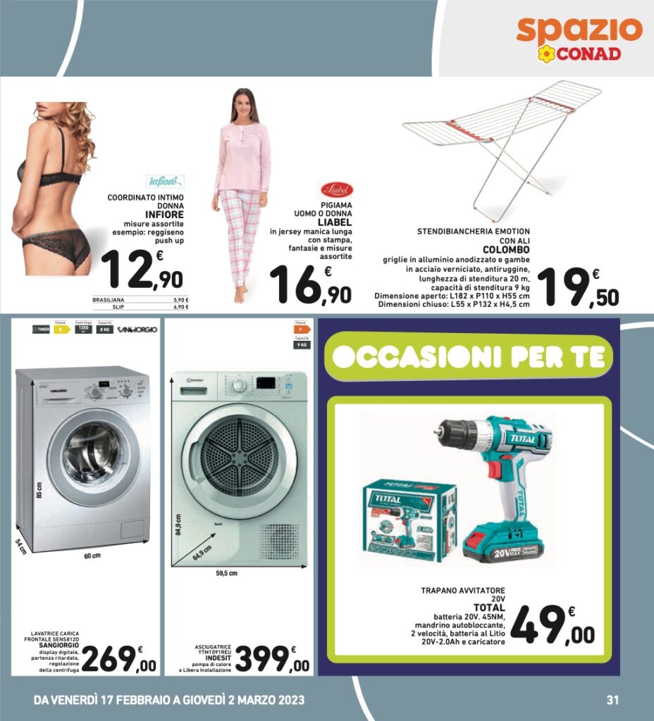 La tecnologia invece finisce relegata a pagina 30, ma Conad convince con un’offerta sulla friggitrice ad aria Philips da 4,1 litri che esce a 79,90 €, forse il vessillo di questa sezione.