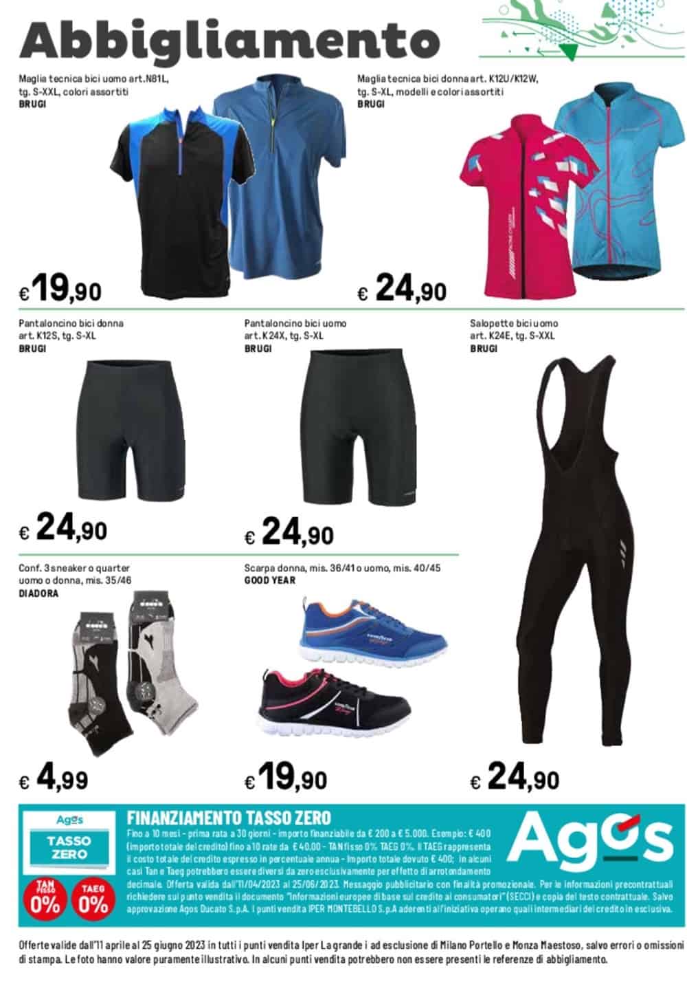 Il volantino si chiude con una serie di accessori e proposte di abbigliamento per chi vuole andare in bicicletta, e nel complesso possiamo dire che sia molto ben bilanciato con prezzi che non vanno mai troppo fuori dalla media e restano accessibili alla platea dei supermercati, in generale meno pretenziosa (e con una capacità di spesa più bassa) rispetto a quella che si muove con i negozi specializzati.