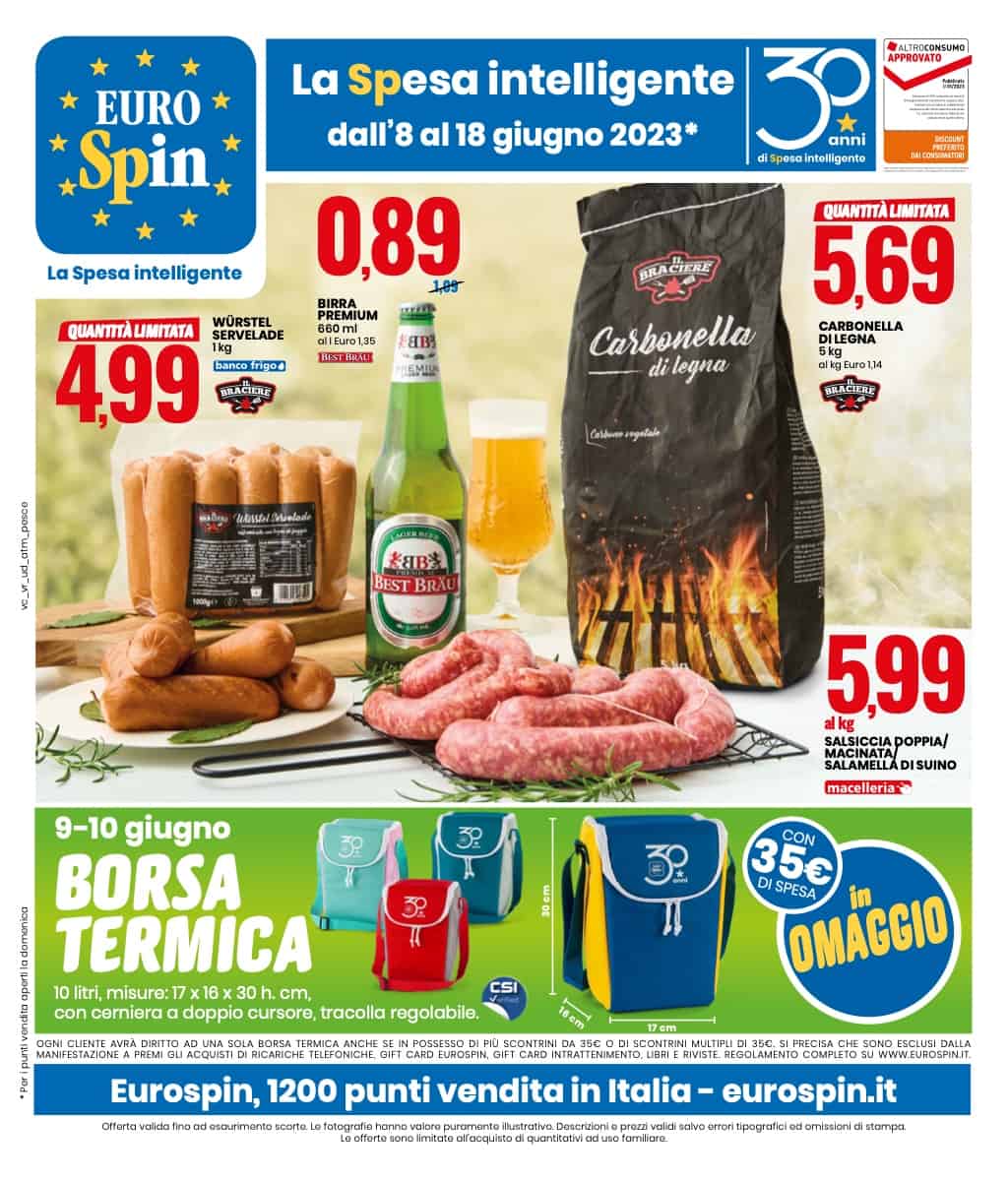 La pubblicità che è comparsa in televisione nel weekend (lungo ) del 2 giugno ha già svelato la parte più interessante del volantino Eurospin dall’8 giugno 2023: torna il regalo per chi fa almeno 35 € di spesa, e stavolta è un regalo legato all’estate, oltre che al 30º anniversario Eurospin, dal momento che si tratta di una borsa termica – con un 30 stampato sulla patella di chiusura.